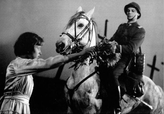 Hay en el cine de Spielberg un insulto a la inteligencia que se resuelve en una sola escena en varias de sus películas: una especie de ruptura conceptual dónde la dureza de la existencia se rinde ante la ingenuidad típica de una eterna edad mental infantil. Así “Rescatando al soldado Ryan” y la inverosímil misión de un pelotón para salvar la vida de un solo hombre en contraste con las impactantes escenas del desembarco en Normandía. En este caso, el caballo del título, utilizado durante la durísima guerra de trincheras de la Primera Guerra Mundial (la Batalla del Somme, ni más ni menos, una de las más cruentas del conflicto) que escapa y queda atrapado en medio de las alambradas, es localizado por soldados enfrentados en ambos bandos (ingleses y alemanes) y detiene momentáneamente la guerra para salvarlo. Comparada con las películas anteriores este producto palomitero, bien hecho sin embargo, y aparecido en cartelera el mismo año que “El caballo de Turín”, se resuelve en lo que es: una más de las películas “maduras-inmaduras” de Spielberg que adolece del Síndrome de Peter Pan.