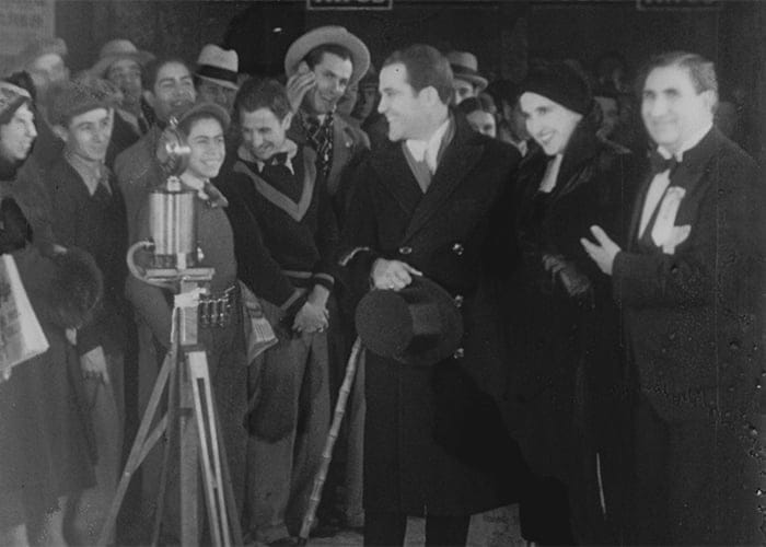 Por último, los detalles que –quizá- son los menos evidentes: el público. Así es, la gente que está detrás de donde los actores y presentador se encuentran nos muestran más cosas de lo que pareciera. Son varios los detalles que se podrían describir, pero hay uno muy interesante que muestra la falta de familiarización de la gente con el cine sincrónico, pues resulta paradójico que a pesar de que el presentador explica al principio la función de dicha prueba, la gente de atrás (al igual que los actores) casi no voltea hacia la cámara, su mirada se dirige al costado por donde los artistas están pasando para llegar al frente. Por el contrario, pareciera que esto poco les importa y se la pasan riendo de las ocurrencias del presentador o murmurando sobre las celebridades, como si no terminaran de darse cuenta que también ellos son imagen y sonido, y los están grabando para la posteridad como uno de los primeros públicos de este tipo de cine.