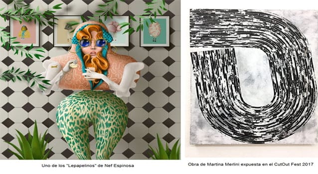 El mexicano Leonardo Díaz mezcla también diferentes estilos y técnicas para crear cuadros donde la metamorfosis es la constante. En sus pinturas vemos rostros que se abren para crear nuevas formas y coloridas imágenes que salen literalmente de la cabeza que las (re)crea. Finalmente, “Lepapelinos of Lepapel” aparece como una interesantísima bitácora de viajes imaginarios. Igual que lo hiciera Marco Polo hace cientos de años, Nef inventa y recorre un paraíso repleto de seres tan extraños como hilarantes, tan increíbles como entrañables. La obra de estos 4 autores aparece en el marco de CutOut Fest como un justo refuerzo de la idea que mueve el festival: la voluntad de hacer visible lo invisible.